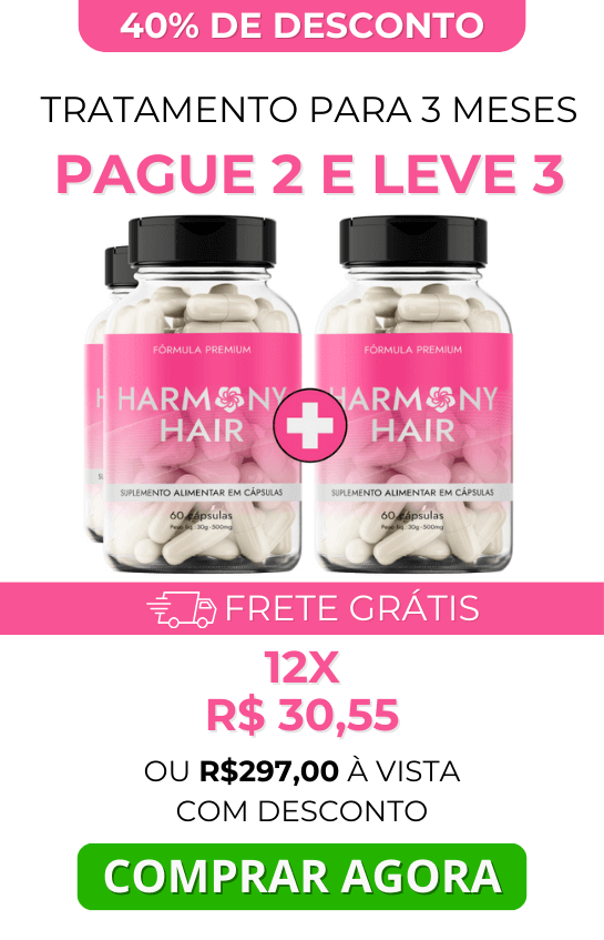 Harmony Hair deve ser tomado diariamente, 2 comprimidos por dia, preferencialmente 01 logo após o café da manhã e outro antes de dormi. Recomendamos o uso por no mínimo 3 meses para um resultado surpreendente e definitivo.