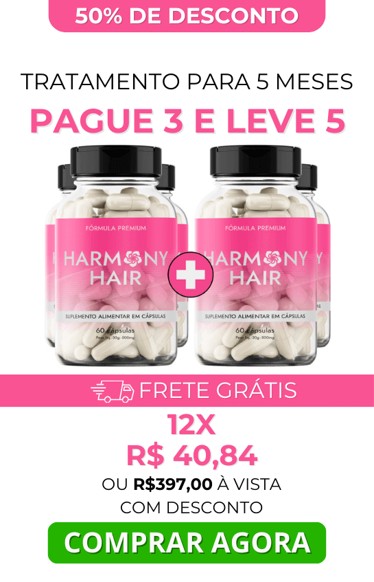 Harmony Hair é diferente de tudo que você já utilizou antes, isso porque é a primeira vez que a ciência consegue juntar tantos ativos poderosos em uma só composição: Ácido Pantotênico + Biotina + Ácido Fólico + Vitaminas.